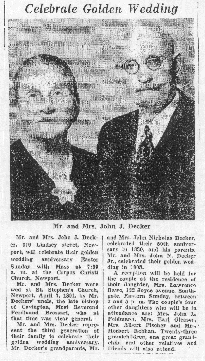 Date Married: April 7, 1891 in St. Stephen Catholic Church, Newport, Campbell County, KY |